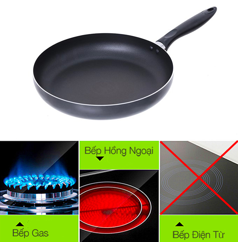 Chảo sử dụng tốt trên bếp gas, bếp hồng ngoại, không dùng được cho bếp từ
