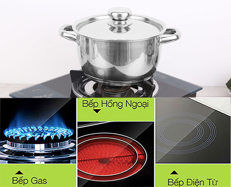 Nồi có 3 đáy dùng được trên bếp từ, bếp hồng ngoại, bếp gas