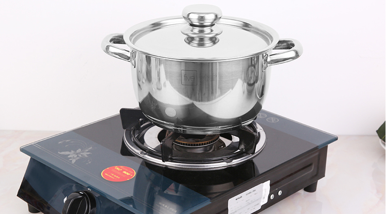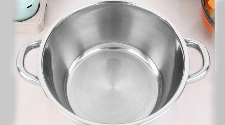 Đáy nồi inox phẳng, rộng, có 3 lớp, nấu thức ăn chín nhanh