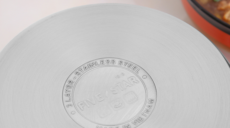 3 lớp của đáy nồi gồm inox 430 – nhôm – inox 430, 2 lớp inox 430 ít bị oxi hóa, an toàn, lớp nhôm ở giữa truyền nhiệt tốt giúp nấu ăn tiết kiệm điện năng, thời gian hiệu quả.