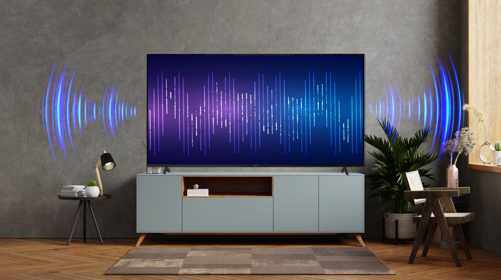 - Công nghệ âm thanh vòm Dolby Atmos cùng với S-Force Front Surround mang cơ chế truyền tải âm thanh của rạp chiếu phim, những thanh âm sẽ truyền đi mọi hướng, chân thật và chi tiết.