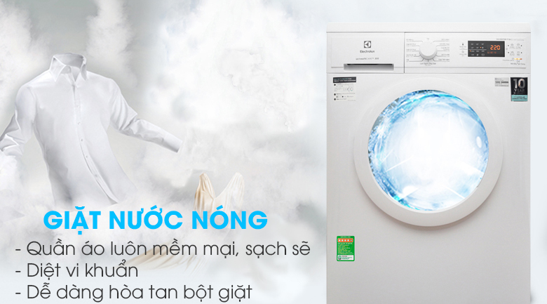 Được trang bị công nghệ giặt bằng nước nóng có thể điều chỉnh nhiệt độ phù hợp với từng loại vải, máy giặt Electrolux EWF8025DGWA sẽ giúp hòa tan bột giặt tốt hơn, tiêu diệt vi khuẩn và tác nhân gây dị ứng, đặc biệt là cặn bột giặt còn sót trên quần áo, bảo vệ cho làn da của bạn và người thân.