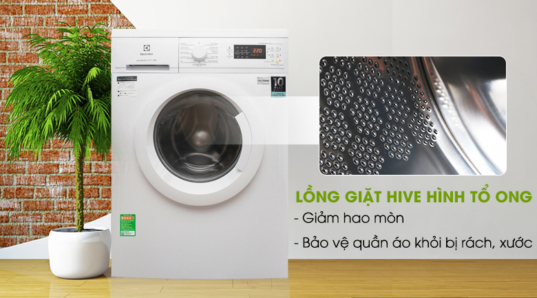 Có thiết kế dạng tổ ong độc đáo cùng các gờ cong mềm mại, lồng giặt Hive của máy giặt Electrolux luôn đảm bảo hiệu quả giặt sạch đến tối đa mà không gây rách, xước, cho quần áo được bền đẹp như mới với thời gian.