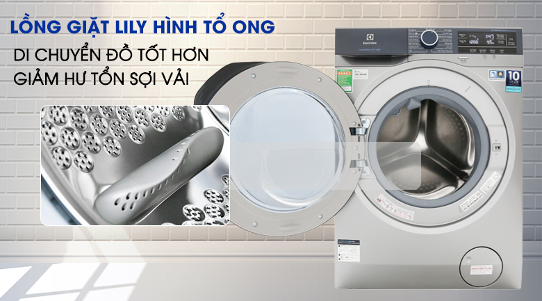 Lồng giặt Lily thiết kế hình tổ ong, được làm từ thép không gỉ giúp tối ưu hiệu quả giặt tẩy. Hệ thống lỗ nhỏ có tác dụng tạo ra những dòng nước nhỏ cực mạnh, ma sát tốt với đồ giặt, dễ dàng đánh bật mọi vết bẩn cứng đầu.