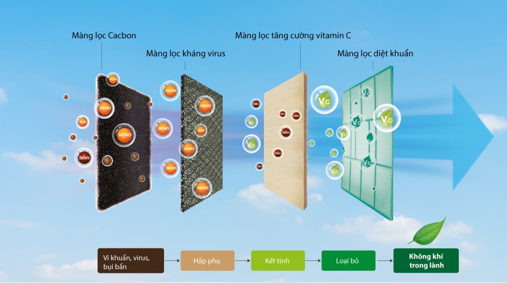 - Chức năng tự động làm sạch dàn lạnh sẽ nâng cao tuổi thọ của máy, tăng hiệu quả lọc bụi và làm lạnh mang đến sự an toàn cho người dùng.