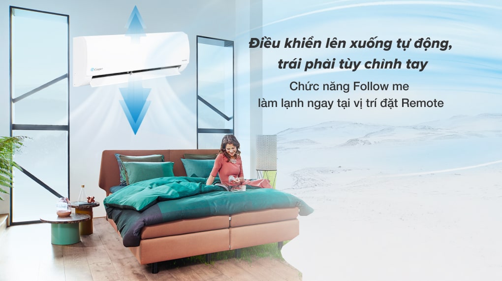 - Điều khiển lên xuống tự động, trái phải tùy chỉnh tay nhanh chóng mang hơi lạnh lan tỏa khắp không gian phòng, tạo được cảm giác thoải mái cho người dùng.