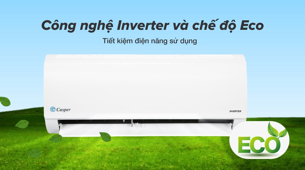 - Chế độ Eco được kích hoạt thì máy lạnh Casper sẽ giảm 1°C sau 1 tiếng (tối đa 2°C) giúp tiết kiệm điện năng và làm lạnh hiệu quả.