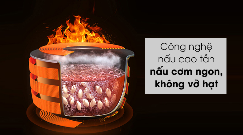 Cơm nấu chín ngon, nhanh, lưu giữ lại nhiều dưỡng chất có trong thực phẩm nhờ công nghệ nấu cao tần IH dùng từ trường làm nóng lòng nồi trực tiếp không thông qua mâm nhiệt