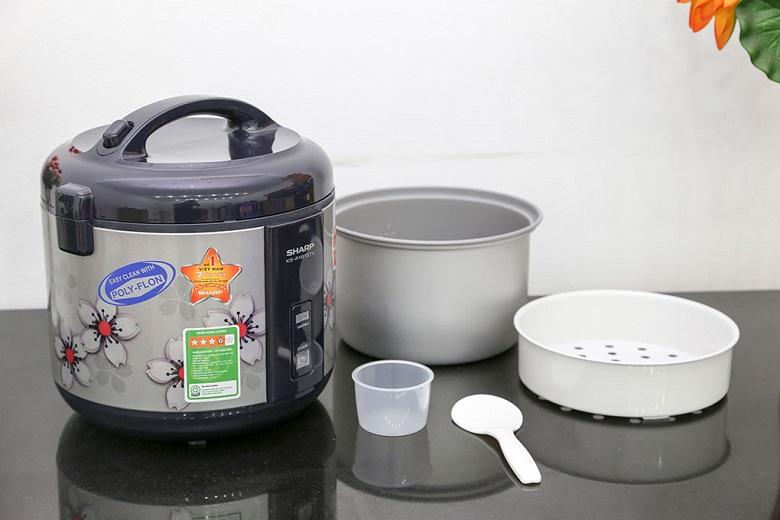 Nồi cơm nắp gài Sharp KS-R181STV đến từ thương hiệu nổi tiếng Nhật Bản và được sản xuất tại Thái Lan nên bạn hoàn toàn có thể yên tâm về chất lượng khi chọn và sử dụng sản phẩm này, nồi có giá thành không quá cao phù hợp với mọi đối tượng người dùng, đặc biệt là với các khách hàng có nhu cầu đáp ứng bữa cơm cho từ 4 - 6 người.