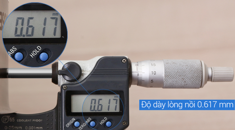 Thành nồi Sunhouse dày 0.617 mm, hấp thu nhiệt tốt, tỏa nhiệt đều, giúp nấu ăn nhanh chóng