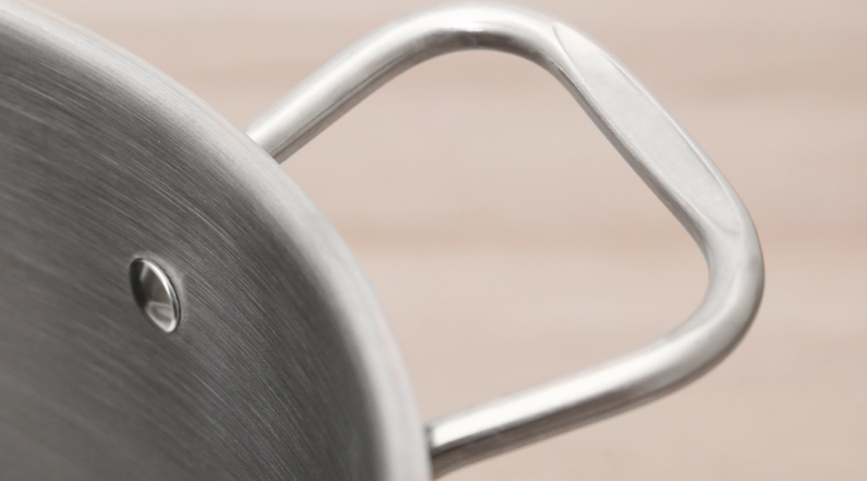 Tay cầm nồi inox Sunhouse dạng đũa được gắn chặt vào thân nồi, an tâm khi di chuyển