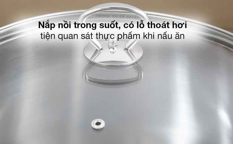 Lỗ thoát hơi trên nắp giúp giảm bớt áp suất tạo ra trong nồi, hạn chế chao đảo vung khi đun sôi, giảm hơi nước làm mờ nắp.
