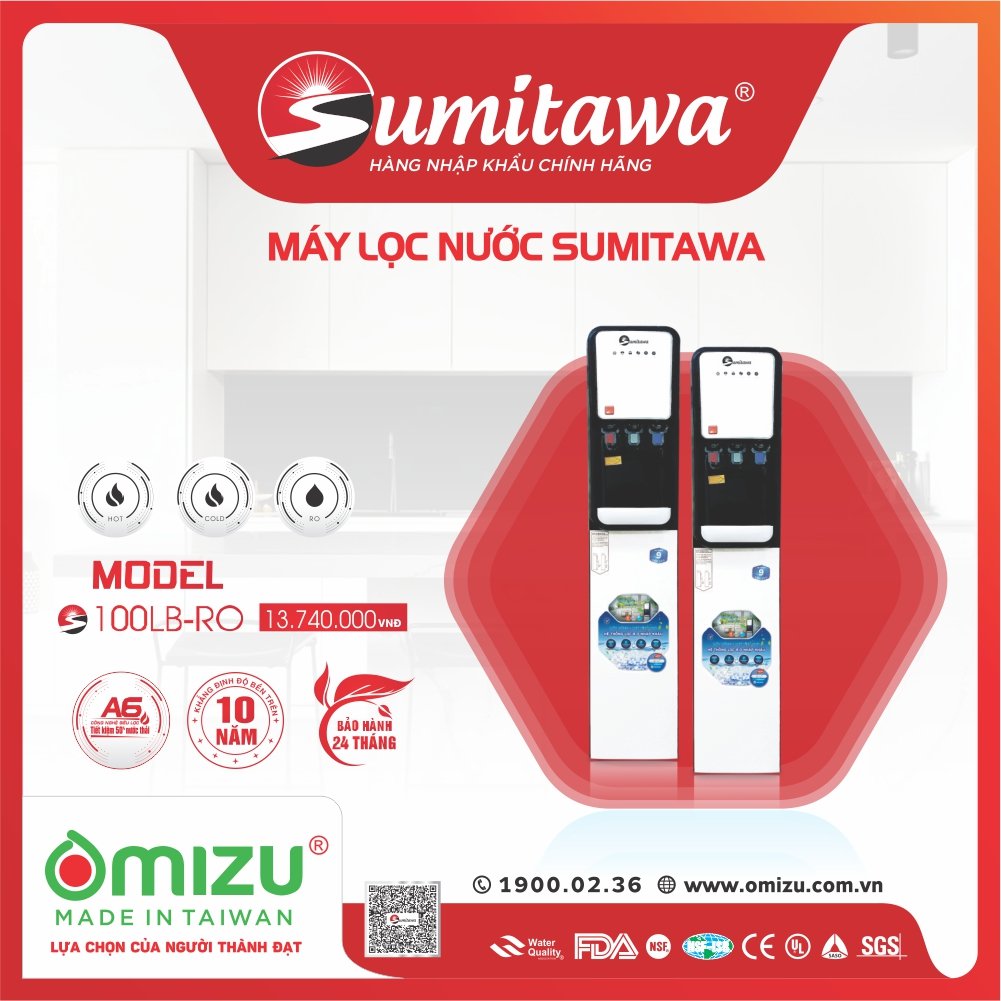 - Cây nước NÓNG LẠNH NGUỘI 3 vòi tích hợp lọc RO cao cấp nhãn hiệu SUMITAWA model 100LB