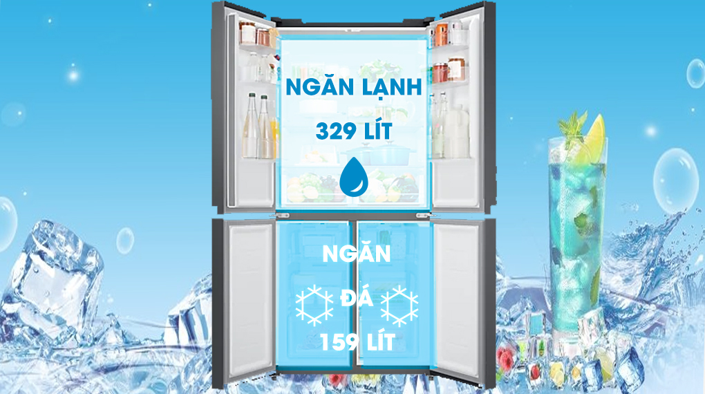 Tủ lạnh với dung tích 488 lít có ngăn đá 159 lít và ngăn lạnh 329 lít nên bạn để được nhiều loại thực phẩm cũng như phù hợp cho nhiều gia đình có từ 4 – 5 thành viên.